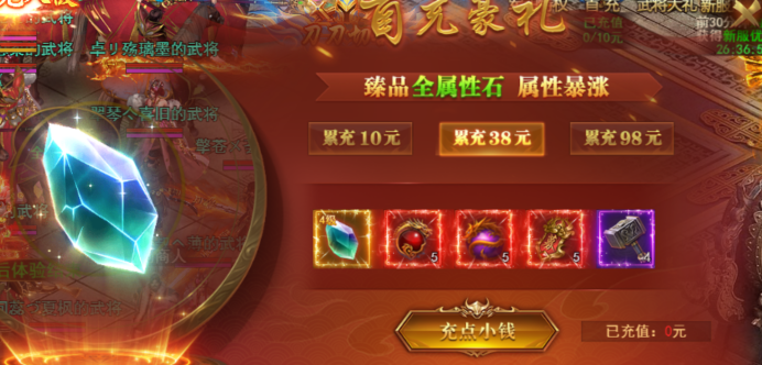 众多礼包助力提升,新手大礼、翅膀大礼、坐骑大礼、武将大礼、淬火大礼、宝石大礼等。